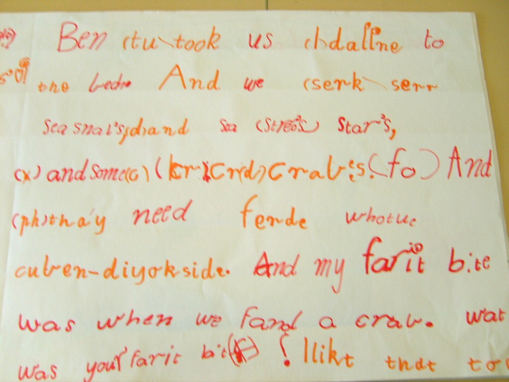 Cheers Nina The names of the students are written down the side. The children write in the order of their name and use their own specific color. This allows me to track an individual’s development. This is the only time I allow the children to write in texta – and they love it!