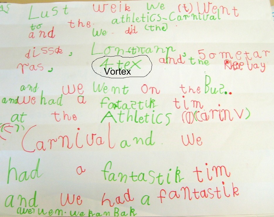 You will not find student led Interactive Writing in books because it is an adaptation to the initial strategy. I must also note that Interactive Writing is a teaching and learning strategy. My student’s journal writing is where they practice and show case their skills  as young writers. For anyone reading this post from outside Australia we have only 2 weeks left of our school year. My children will start Year 1 in late January, 2010.