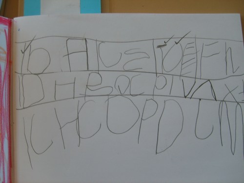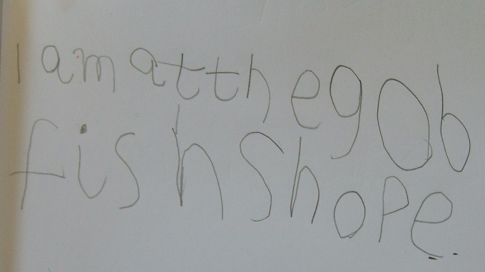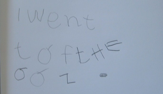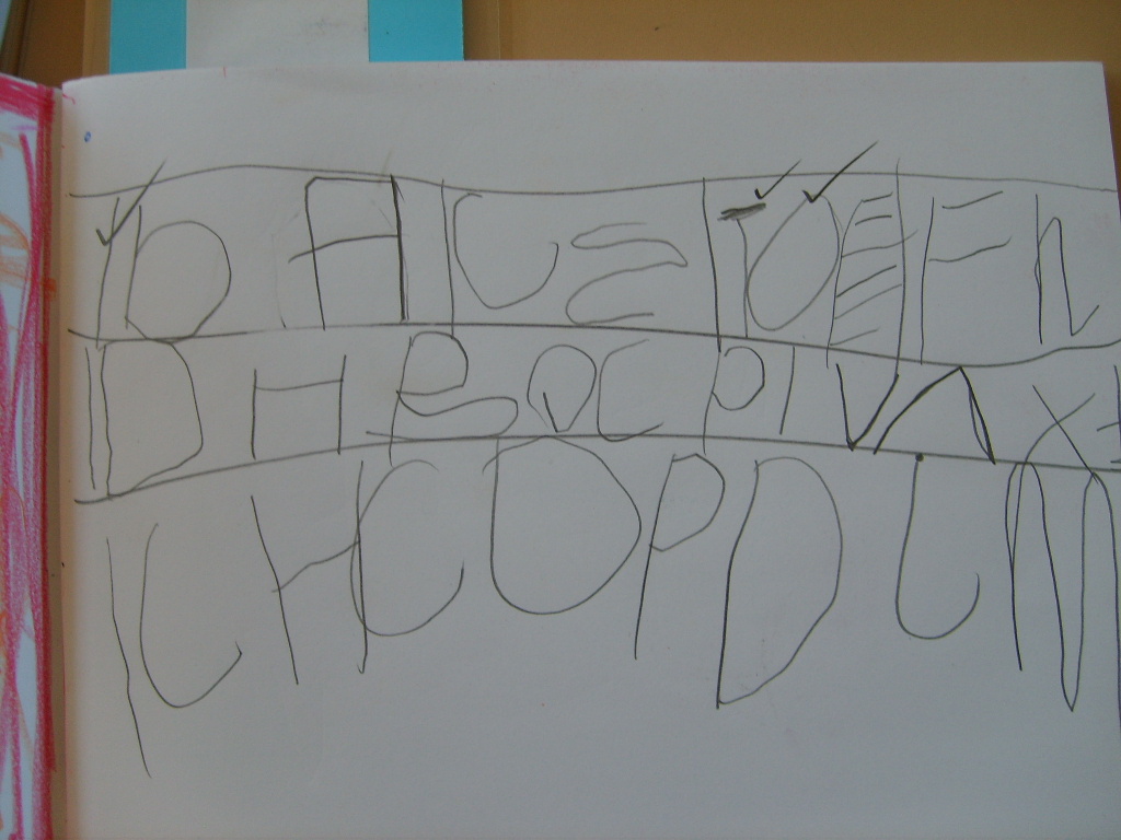 When looking closely at each of these writing samples, I can see their understanding of writing growing. Each sample of writing is a recount of an experience. The concept of a sentence is developing, spaces are evident to define words. Full stops are present in some of the samples along with a capital letter at the beginning of a sentence. Good attempts at spelling unknown words is evident. Within my Interwoven Approach/ Language Experience clear foci are planned in response to student writing needs. My students are well on their way to becoming competent young writers. They are ‘risk takers’, proud of their work and confident enough to ‘have a go’.