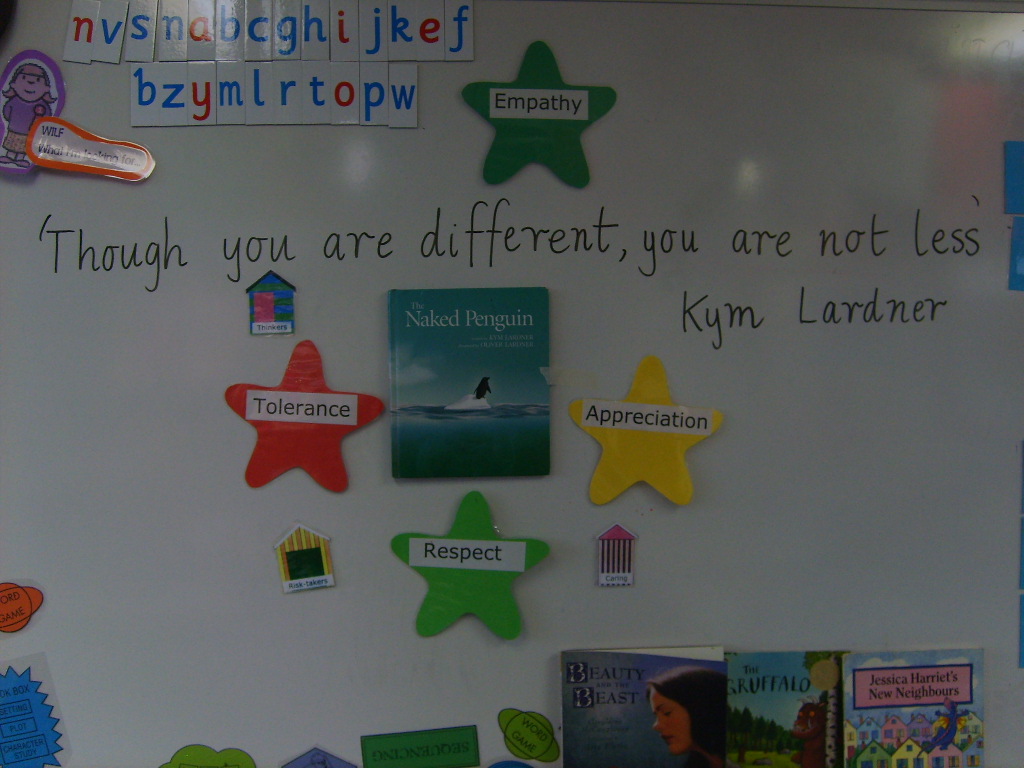 This week we have had Kym Lardner, an Australian author visit our students. I have been introducing Kym’s stories to the children. Kym’s books relate well to the Learner profile and attitudes. Our favourite book is The Naked Penguin. This story is about accepting difference.