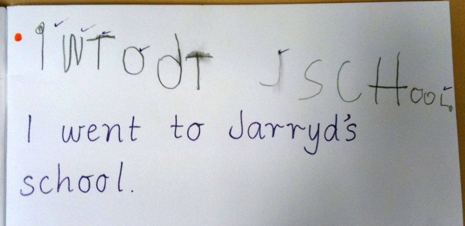 Today I modelled my own journal, using taught strategies, and ‘thinking aloud’. I asked my students for help, played ‘Hangman’ (without the picture) for some words to identify a missing letter / sounds, and referred to our tool cards. I used spacers, and talked about capital letters. Our next inquiry will be: What is a capital letter? After writing my journal, I removed it. I want my students to write independently. To introduce the ‘concepts of print’, I constantly refer to the PM Emergent Writing Exemplar Big Books.