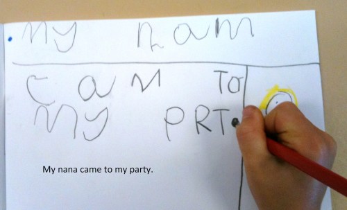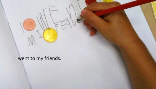 My young writers truly inspire me. Just watching these very young children put their learning into practice is wonderful. They’re searching for letters, hunting for words, starting to prompt each other, using the tool cards, giving writing spacers a ‘real go’ and ‘thinking aloud’. They are engaged, and there is even a little bit of amazement when I read back  what they have written. It’s that look of wonder, and that realization that what they’re writing can be read. This is a quick post, but it’s really rewarding to be their teacher. They are teaching me!