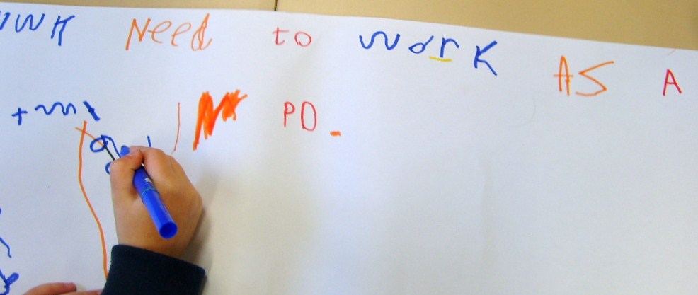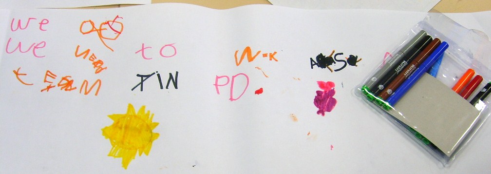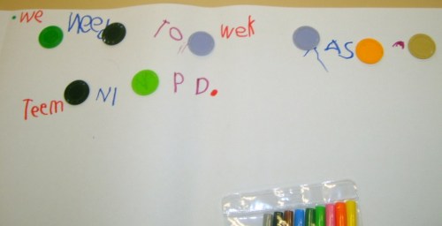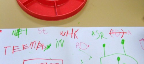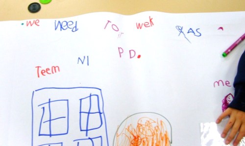 Our Language Experience sentence for week two: We need to work as a team in PD. It’s interesting to note that my students are now using lower case letters with increasing confidence. When looking closely at the examples below, focus on how each child spelt need, team and work. In our share session we looked closely at ‘ee’ and ‘ea’ as in need and feed, team and mean. Very tricky!