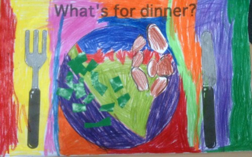Inspired by Masterchef, the children had to plate a meal with specific ingredients: 17 peas, 7 potatoes, 11 small sausages and 19 baby carrots. These meals aren’t fully plated.