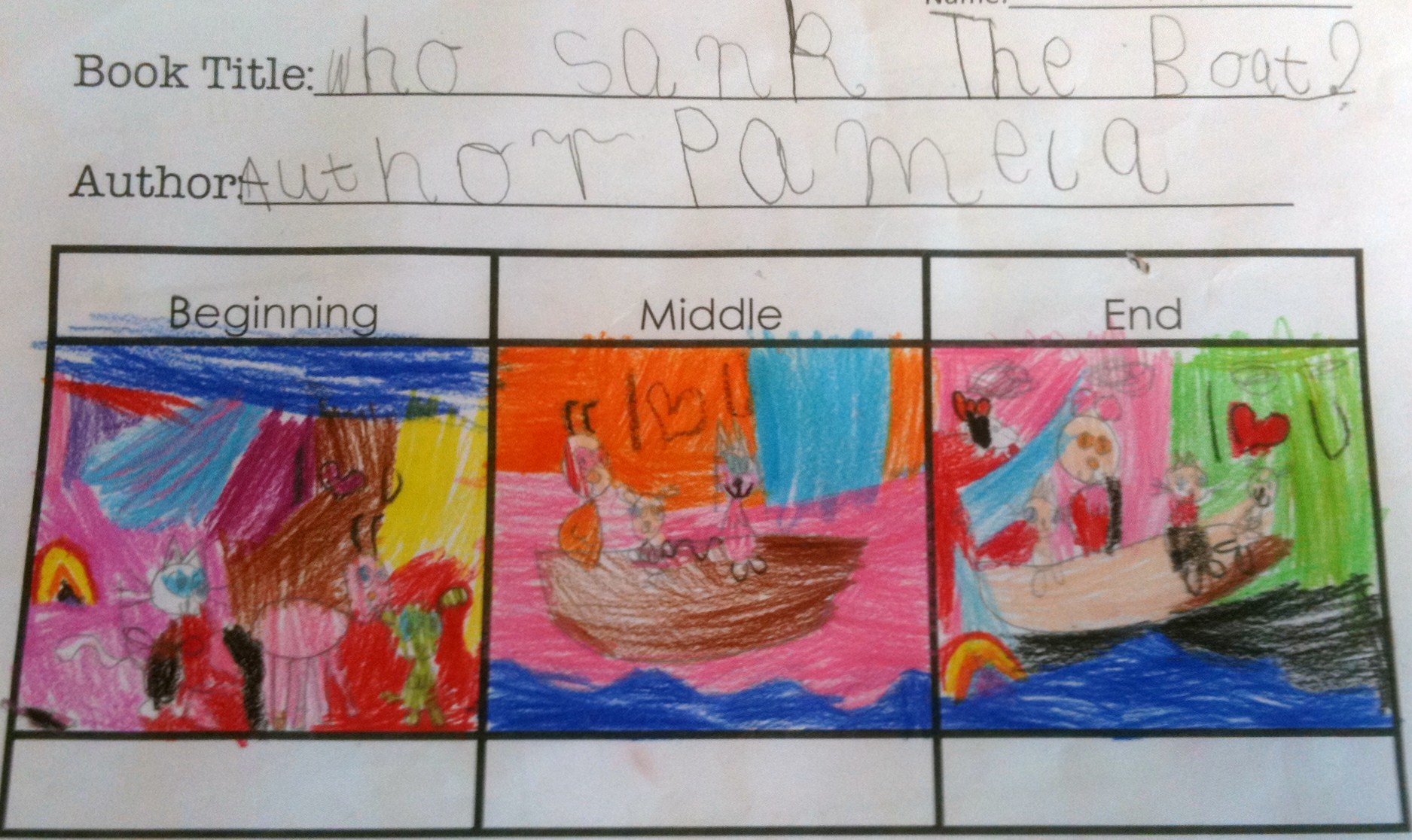 When their map was finished, they completed an activity where they were instructed to identify and draw in detail the beginning, middle and end of the story.