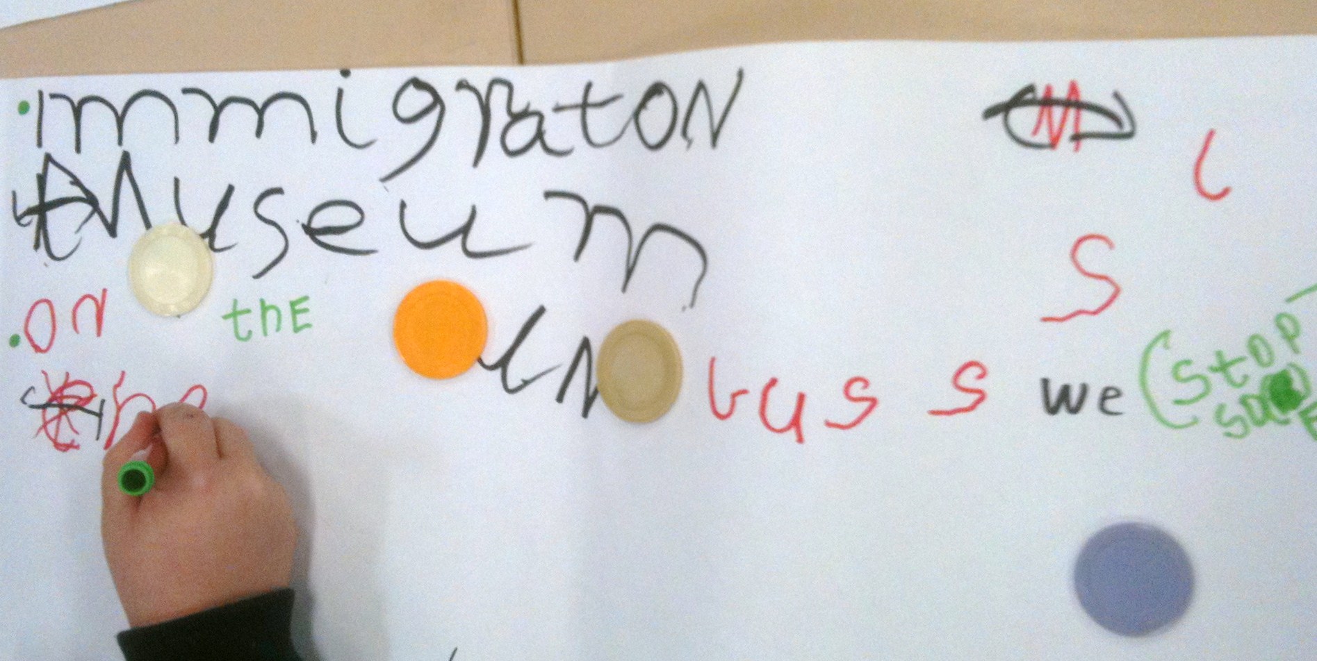 Each child is identified by a color and all are given the opportunity to lead a group. Teaching leadership skills concurrently is essential. The children are given poster sized sheets to write on and colored markers. All students record their name down the side of the paper in their chosen color. This enables the teacher to assess the writing development of individual students.