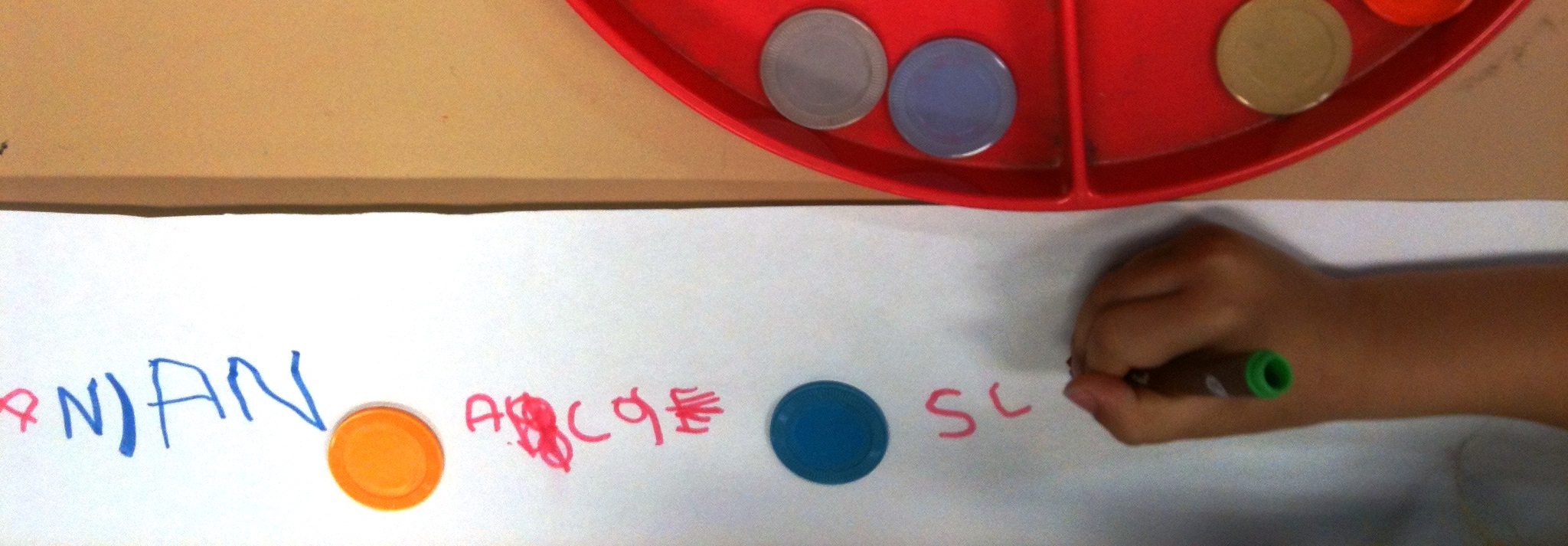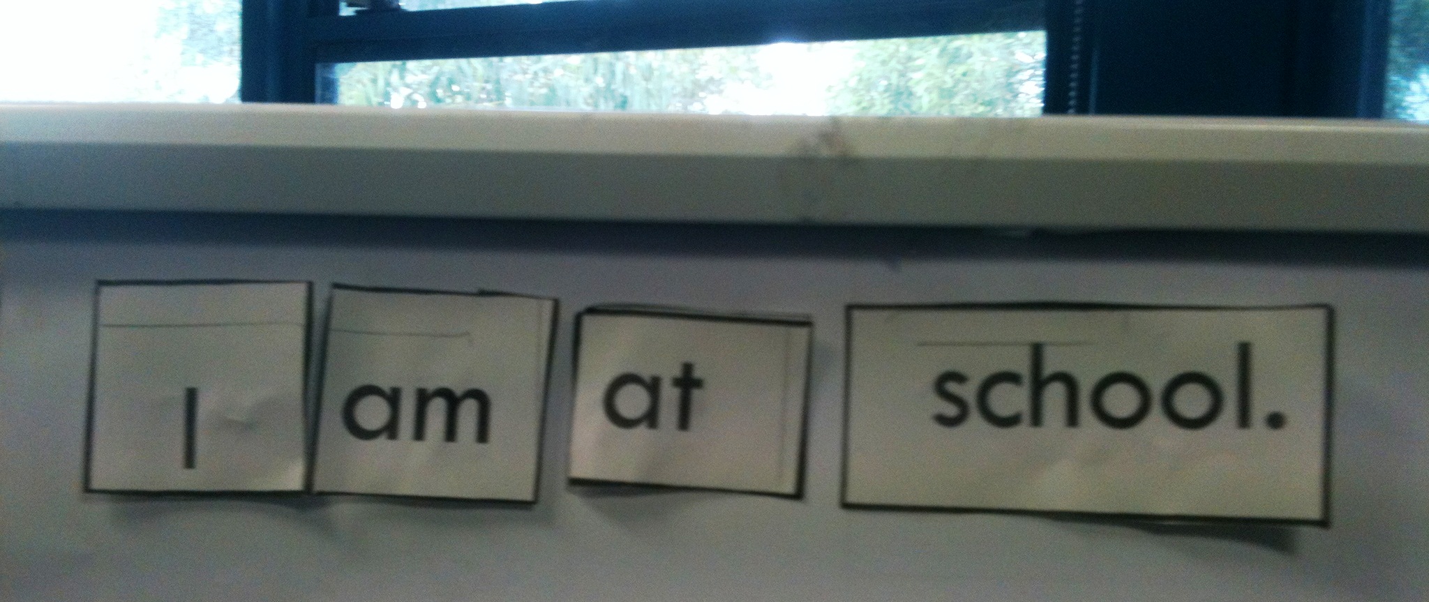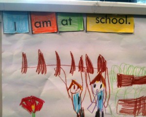 Our first Language Experience sentence is: I am at school. It’s amazing how much they already know about letters and words. We look at books, find sentences, discover spaces and full stops. The first writing strategy I use is Shared Writing. Their knowledge of the group is pooled together, someone will know a sound, and another child will know how to write the letter. It’s wonderful to see their enthusiasm for learning and excitement!