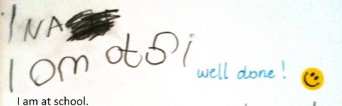 So knowing that they were going to have plenty of practise and that I would write out their sentence when they’d finished, every child had a go. I was impressed by their first efforts.