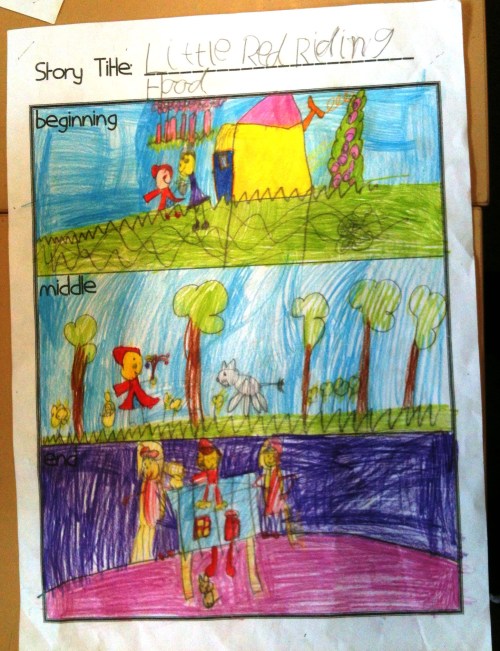 The first task was to complete a story map. The map is used by students to guide their diorama. The children will use their diorama to retell the fairy tale to a peer and then to the grade. Identifying the problem and resolution will help my students format and write their own simple narratives.