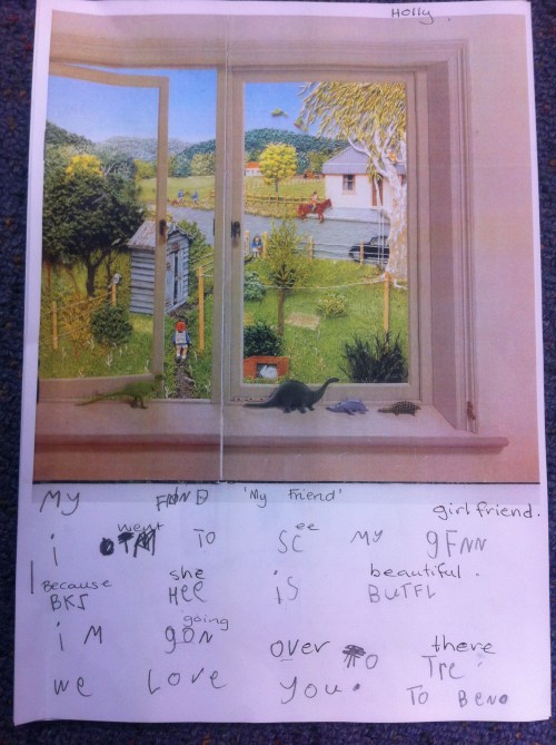 Today I expanded on this discussion by re-capping our conversation from yesterday and showing that same picture. Tying in with our narrative focus, I then asked the students to write a story about the boy walking down the path. I stressed that they could write anything they liked, as long as it was their thoughts or perspective of the picture. I was really impressed by the quality of work.